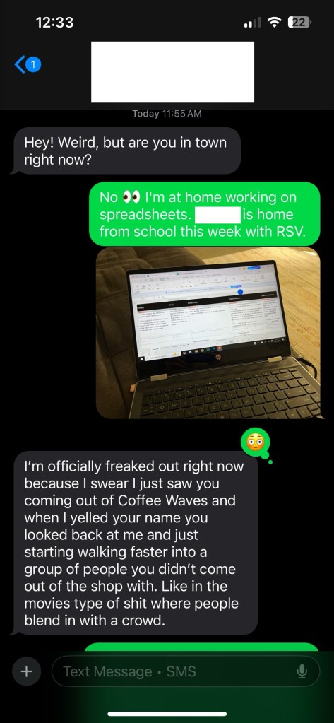 Text convo earlier with a Business friend of mine. She lives in Corpus Christi.